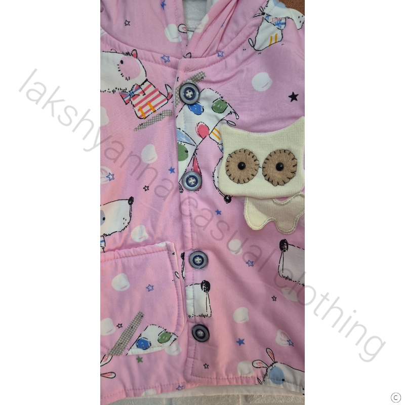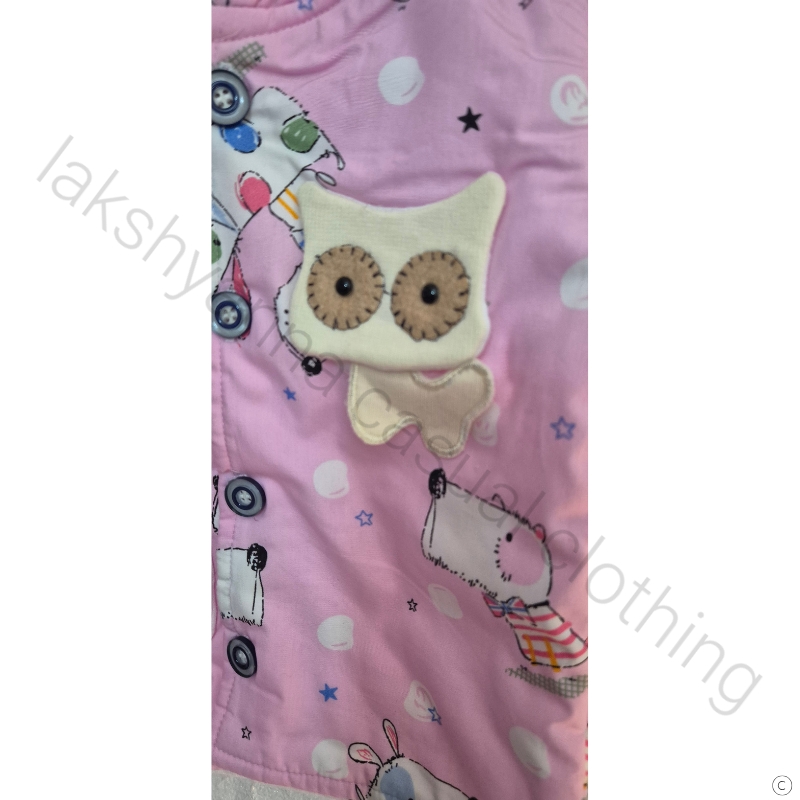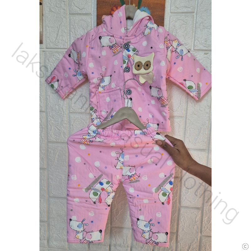 Delightful baby pink winter wear printed set for infants, ideal for cozy nights, sleepwear, and everyday comfort.