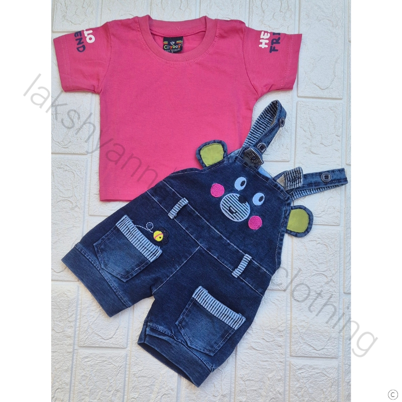 🦋 Design: Unisex summer set with half sleeves cotton tee paired with denim bottoms, available in pink.