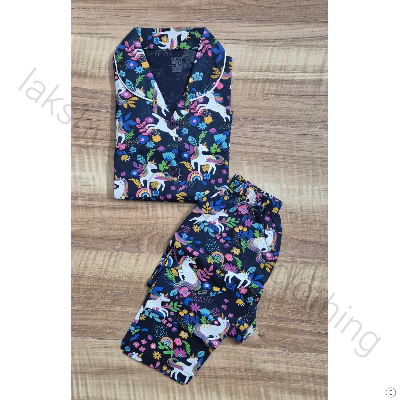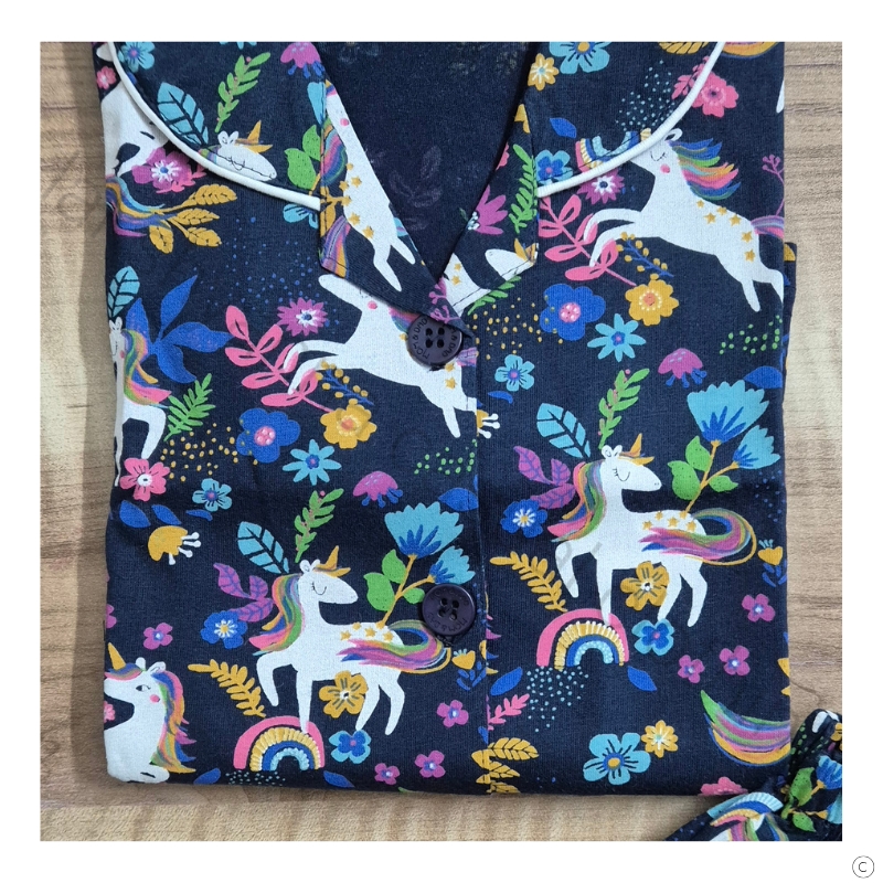🦋 Design: Front-open with collar pattern and full sleeves, highlighted by colorful unicorn and floral prints.