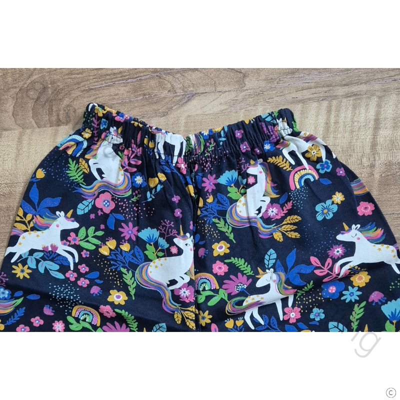 Indigo cotton night suit with vibrant unicorn and floral prints, perfect for magical summer nights.