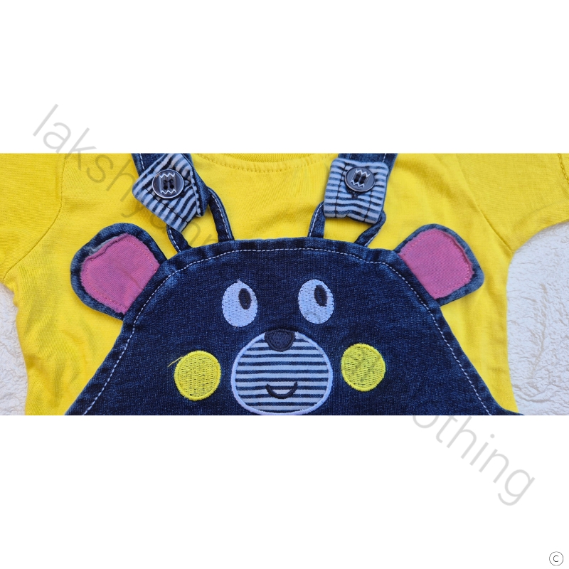 Infant summer wear set with cotton hosiery T‑shirt and soft denim bottom. Yellow variant, breathable and trendy.