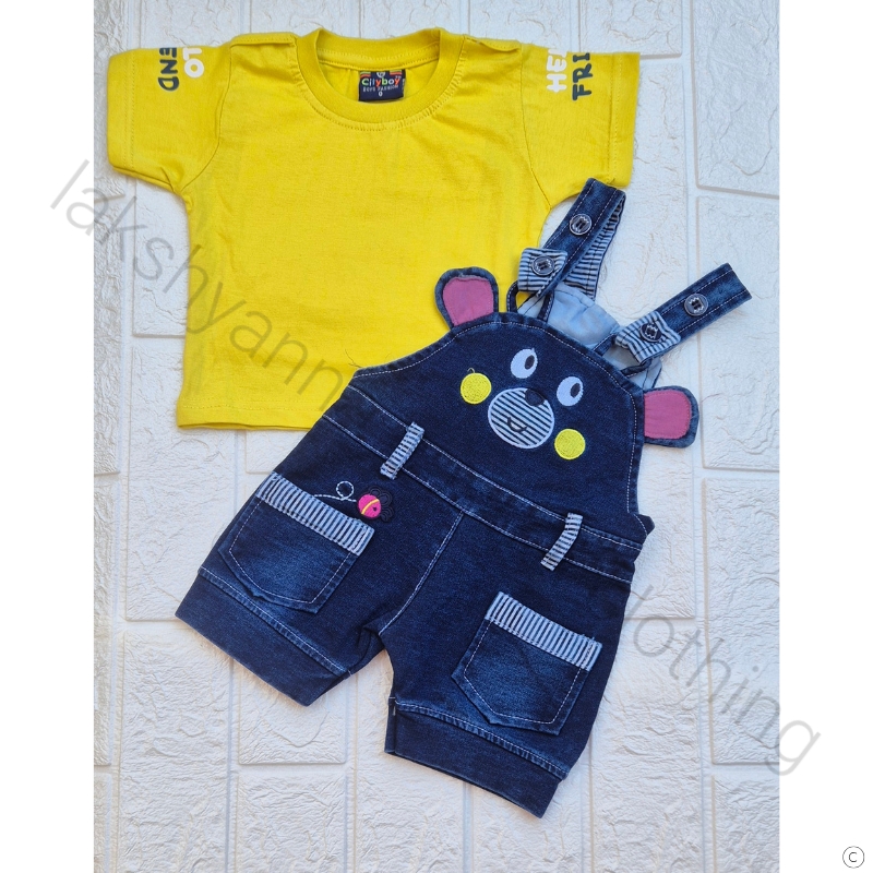 🦋 Design: Unisex summer set with half sleeves cotton tee and denim bottom, available in cheerful yellow.